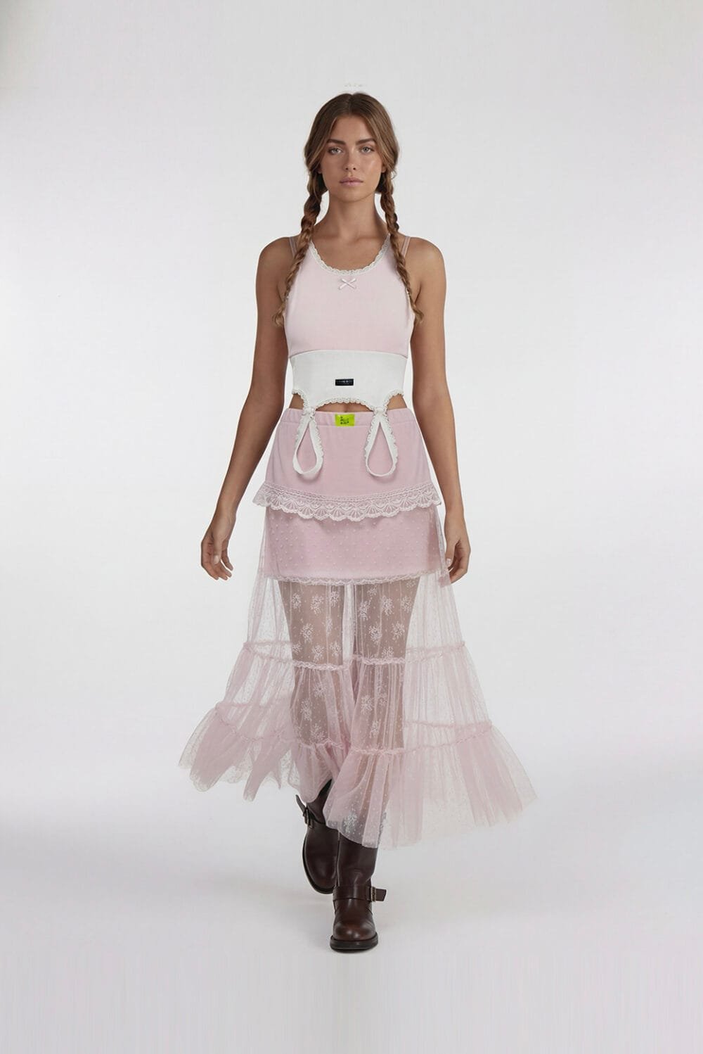 Dejar reposar a 180° de nostalgia hasta que la falda adquiera un movimiento etéreo, dulce y completamente Figueretti.